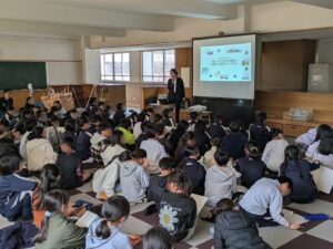 昨年度に引き続き、神戸市内の小学校からの依頼を受け小学5年生の子供達に「貿易と運輸」について出張授業を行いました。 子供達はとても興味深く授業を聞いており、たくさんの感想や質問が寄せられました。 これからもこのような貴重な機会を通して、地域との繋がりを大切にしていきたいと思います。